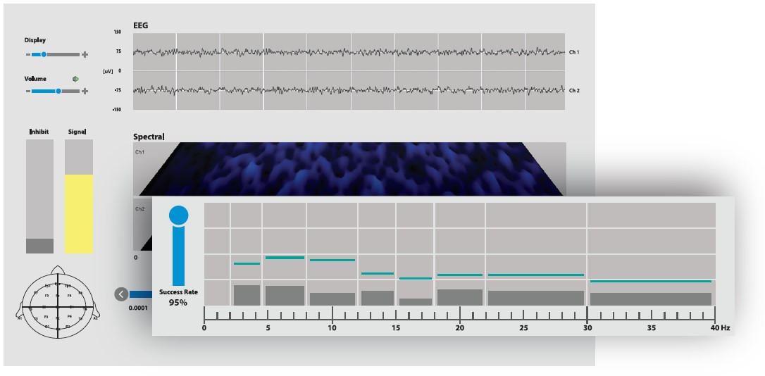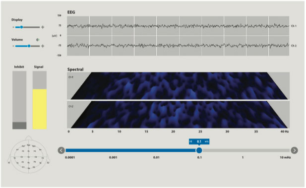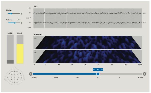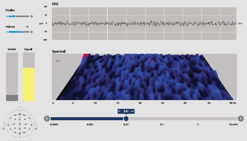 Um die klinische Wirkung zu optimieren, haben wir unser Neurofeedback-Training und die Methode der Befunderhebung einer kontinuierlichen Verfeinerung unterzogen. Dadurch konnten wir weitere Erkenntnisse über die Optionen der Elektrodenpositionierung erlangen und die Trainingsfrequenzbereiche ausweiten und präzisieren. Nachdem wir 1989 mit den Standardfrequenzbereichen Beta und SMR begonnen hatten, erweiterten wir das Spektrum im Laufe der Jahre schrittweise auf niedrigere Frequenzbereiche. Unser Ziel war es, die beruhigende Wirkung auf Nervensysteme mit hohem Erregungslevel zu verstärken. Dies führte uns 2006 in den sehr niedrigen EEG Frequenzbereich unterhalb von 0.1 Hz.